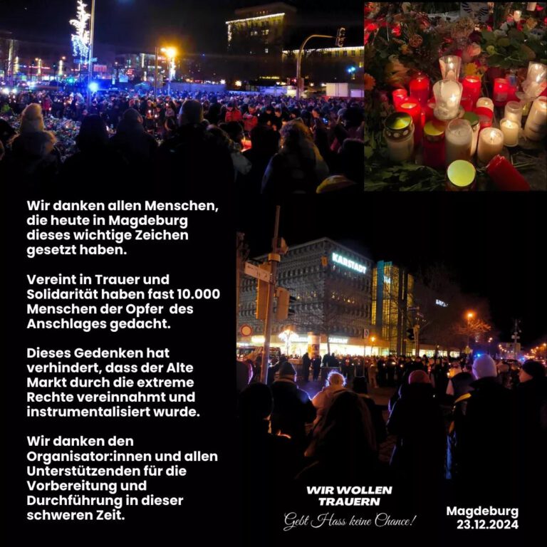 Heute haben in Magdeburg fast 10.000 Menschen, unter ihnen auch viele Rettungskräfte, eine Menschenkette für die Opfer, ihre Angehörigen und […]