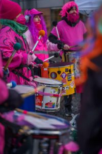 von Künstler:innen des Puppentheaters. Zum Tanzen lud die Trommelmusik der Gruppe „Rhythms